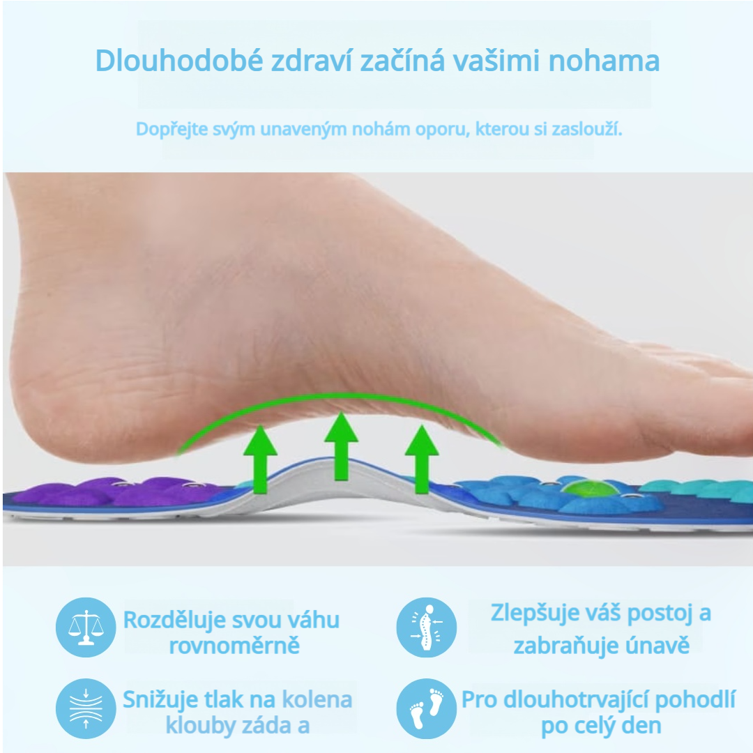 Hrbolky na vložkách jsou prý navrženy v reflexních oblastech chodidel, což může stimulovat akupunkturní body a podporovat krevní oběh, podobně jako akupunktura. První dny nošení jsem si myslel, že jde jen o psychologický efekt, ale po týdnu jsem byl mile překvapen, když jsem zjistil, že bolest plosek nohou se výrazně zmírnila.