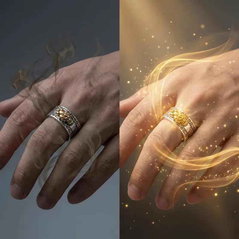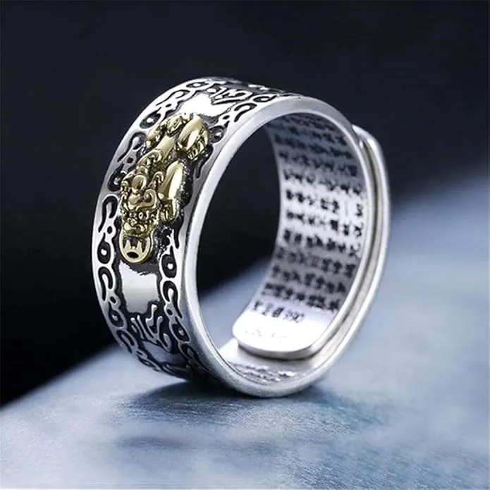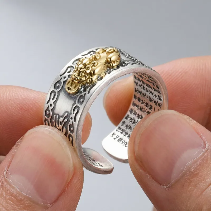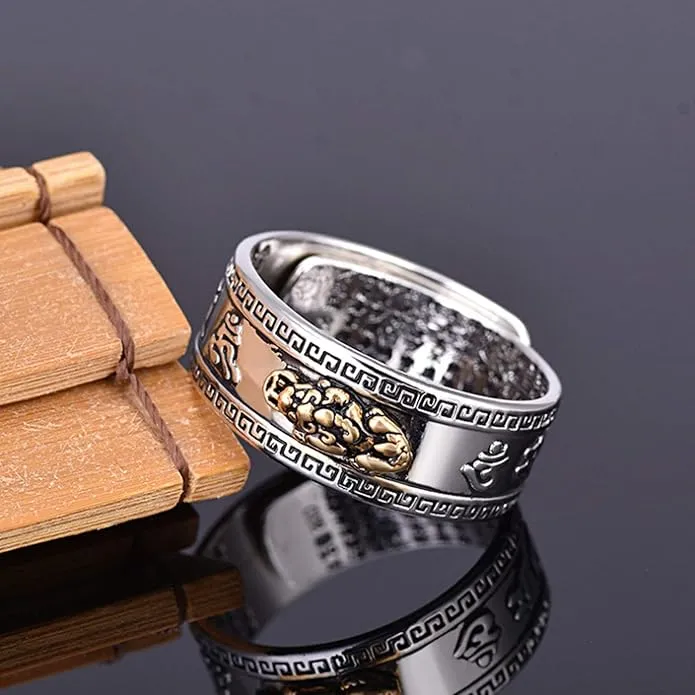 Hemsell Pixiu Ring™ Stříbrný prsten Feng Shui PiXiu s mantrou MANI, ochranný prsten s bohatstvím